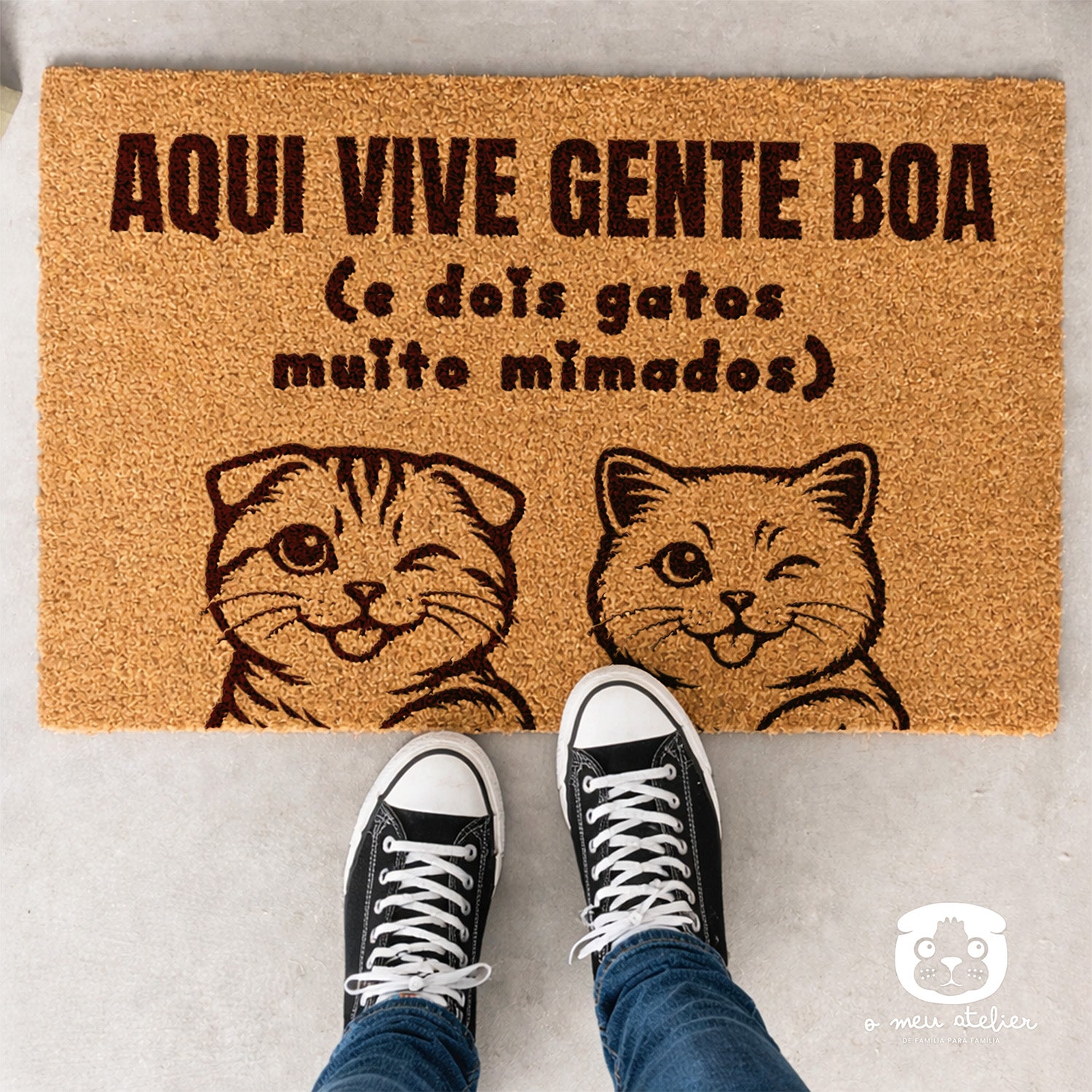Tapete de entrada personalizado - Gente boa e gatos mimados